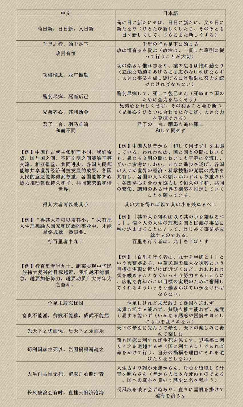 今回の用語は「中國の夢」というテーマを中心に、習総書記が「中國の夢」についての論述で引用された16の古典的名言を選択した。これらの名言は説得力と影響力があり、「中國の夢」の豊かな文化的內容と深い伝統(tǒng)の蓄積を體現している。名言は全て『中華民族の偉大な復興という中國の夢の実現に関する習近平氏の論述?ダイジェスト版』から抜粋している。