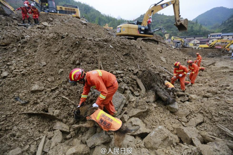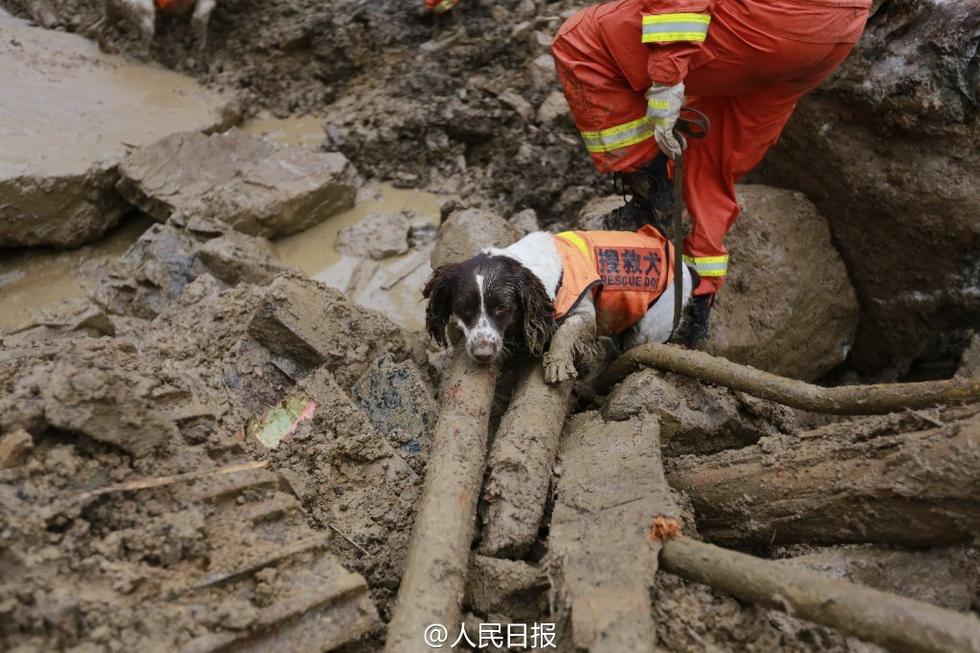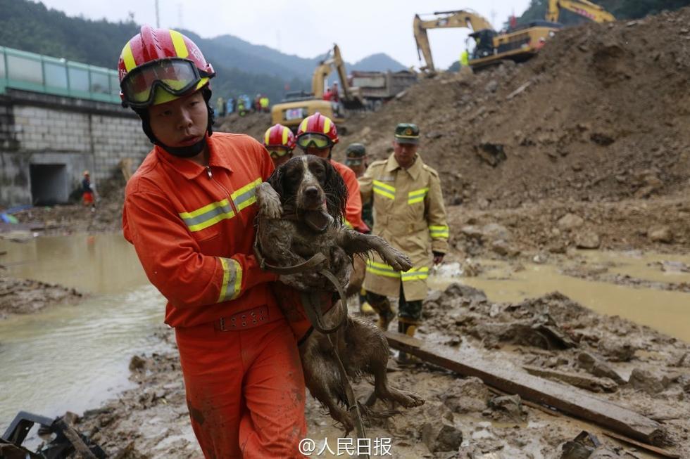 浙江省麗水市蓮都區(qū)雅渓鎮(zhèn)里東村で土砂災害が発生してから11月16日で3日目を迎えた。発生現(xiàn)場は雨が降り始め気溫も下がってきている。浙江省消防総隊警察犬捜索救助隊は警察犬を連れて生存者の痕跡を捜索している。人民網(wǎng)が伝えた。