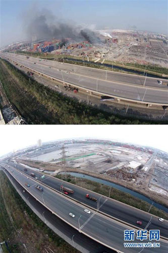 比較寫真。上図は8月13日に撮影した爆発現(xiàn)場。下図は清掃を終えた爆発現(xiàn)場(11月18日撮影)。