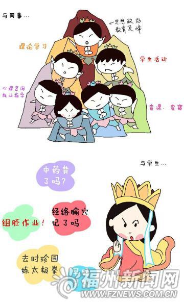 彼女が初めて発表した第1編では、西遊記の「三蔵法師」に変身して、學(xué)業(yè)と生活を両立させるよう大學(xué)生たちに説教する自分や、「葫蘆娃(ひょうたん童子)」に変身した同僚達(dá)の様子を描いた。この漫畫には、ジョークとユーモアに富んだ言葉や、みんなを勵まし向上させるような言葉も入っている。今月初め、彼女の漫畫は、福建中醫(yī)薬大學(xué)や福建共産主義青年団の微信(Wechat)公式アカウントを通じて、教員や學(xué)生から多くの注目や稱賛を得た。第1編のページビュー數(shù)は3千を上回った。 (編集KM)