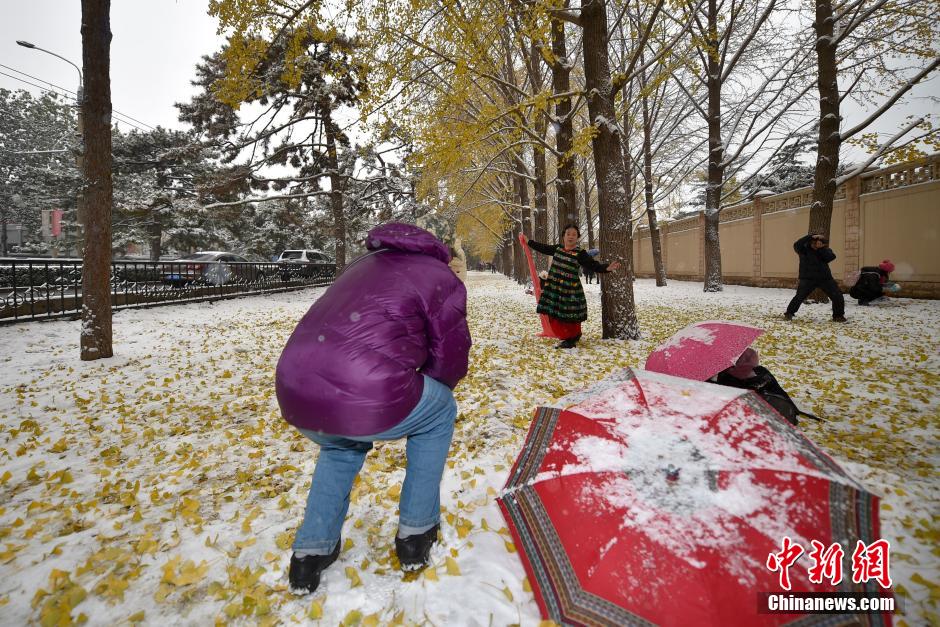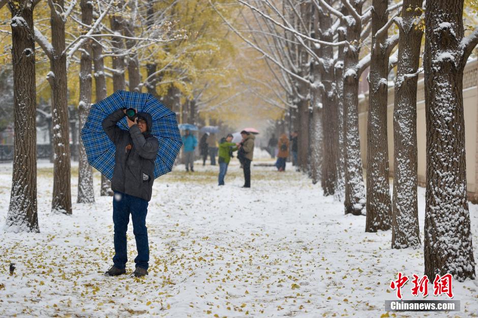 11月22日、北京は今年2度目の降雪となった。釣魚臺外苑にある銀杏並木はいつにないにぎわいを見せ、一面の雪に落葉した黃金色の銀杏が映え、その美しい景色は胸が締め付けられるほど。多くの人々は寒さもものとせず、鮮やかな色合いの服を身につけ、この美しい景色をバックに記念撮影をしていた。中國新聞網(wǎng)が伝えた。(編集TG)