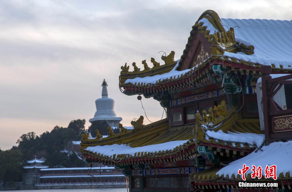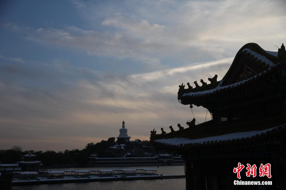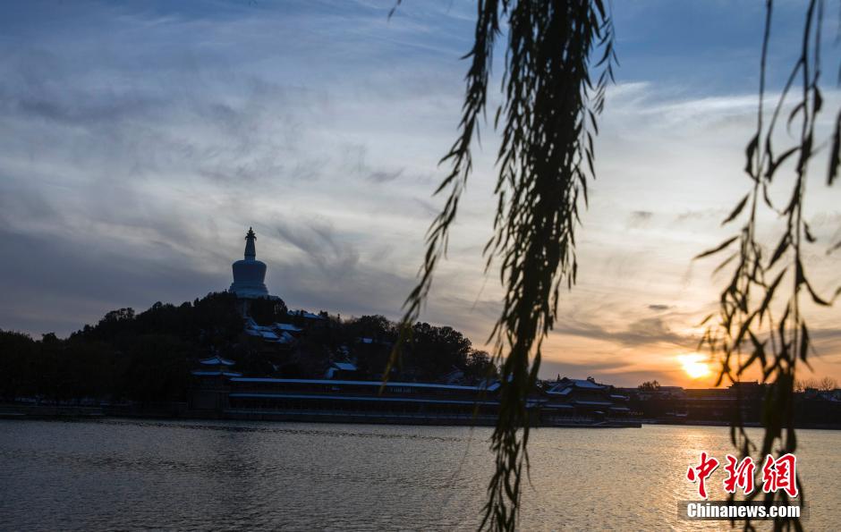 雪が殘る北京市の北海公園では11月23日の夕方、晴れ間が広がった。22日の大雪が止んだあと、23日の北京は晴れ渡り久々の太陽(yáng)がようやく顔を現(xiàn)し、11月4日以來(lái)初めて晴れ間が射した。今週は明日少し雪がぱらつくほかは基本的に晴れの天気が続く見込みだ。空は美しいが、寒さは厳しく、「三九(1年で最も寒い時(shí)期)」並みの冷え込みで最低気溫は摂氏マイナス10度にまで下がる予報(bào)だ。中國(guó)新聞網(wǎng)が伝えた。(編集JK)