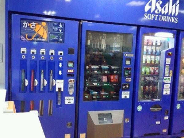 靜岡県御殿場アウトレットの休憩所に雨傘の自動販売機が設(shè)置されている。アウトレットには傘を売る店舗もあるが、突然の雨に遭遇するときには、この自動販売機から傘を購入し急場をしのぐとこの上なく便利である。