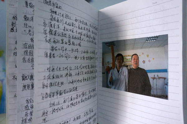 最後に患者さんからの言葉です。「中國(guó)に來(lái)てくれてありがとう。今まで一年以上リハビリを受けたが、歩けるようにはならなかった。今では階段も上り下りできるようになった。本當(dāng)にありがとう」。これは一例ですが、本當(dāng)に多くの方に嬉しい言葉をかけて頂きました。うまく聞き取ることができないこともあったので、これらの言葉は退院時(shí)にノートに書(shū)いてもらっていました。このノートは日本に帰ってからも一生の寶物になると思います。