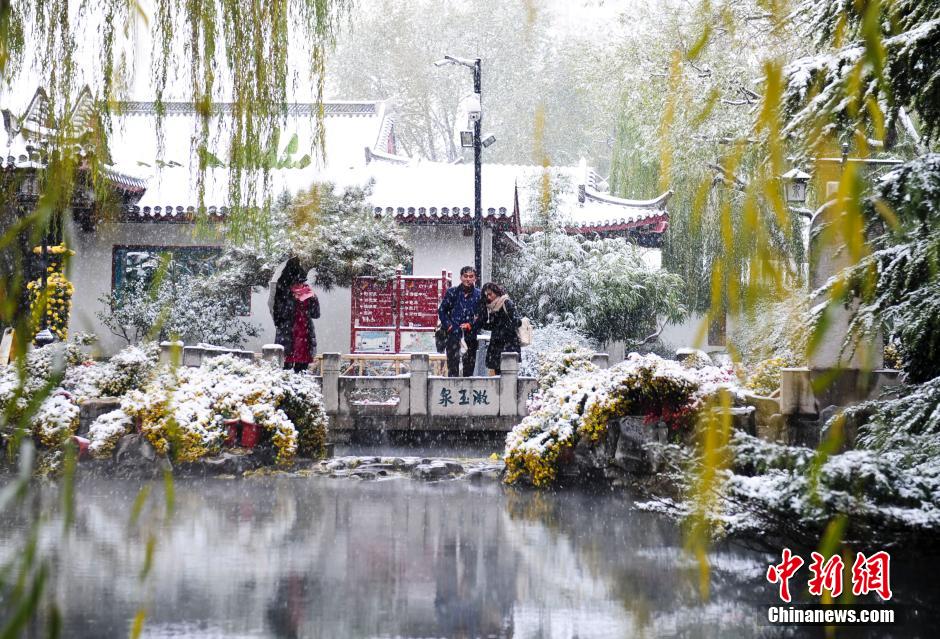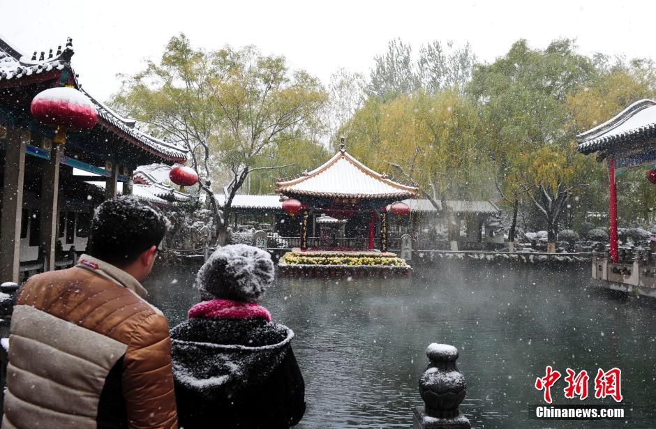 一組のカップルが11月24日、趵突泉(山東省済南市)で気嵐現(xiàn)象の美しい景色を鑑賞していた。同日、済南市は冬に入ってから初めての雪を迎え、趵突泉には再び気嵐現(xiàn)象の美しい景色が出現(xiàn)した。泉から出る水蒸気が霧のように立ちのぼり、まるで仙境のようだ。中國(guó)新聞網(wǎng)が伝えた。(編集JK)