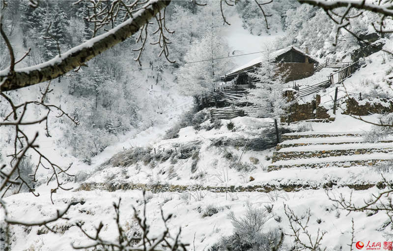 山西省寧武県王化溝村は11月24日未明、真っ白な大雪に覆われ、村落の周りを囲む杉の木は雪をいっぱいに被り、まるで銀世界に入り込んだようだ?!钢妞烁·濉工趣贤趸瘻洗澶韦长趣扦ⅳ辍⒋迓浃i2300メートルの斷崖絶壁に建てられたため、「宙に浮く村」と呼ばれている。2010年、「中國(guó)歴史文化名村」の稱(chēng)號(hào)を受け、「宙に浮く古い村」とも呼ばれている。王化溝村の歴史は明の末期から清の初期まで遡ることができる?!钢妞烁·濉工厦鳏文┢冥榍澶纬跗冥俗鳏椁欷郡妊预护à椁欷皮い?。明の末期の農(nóng)民蜂起の指導(dǎo)者?李自成が寧武関を攻め落としたあと、北京へと一気に攻め入った。明朝最後の皇帝?崇禎帝は4人の皇子を?qū)幬溟vの周遇吉総兵官(司令官に當(dāng)たる)に保護(hù)を託した。周総兵官は命からがら逃げのびた寧武の4人の皇子を?qū)幬浃吻逭嫔狡諒晁陇吮茈yさせ、彼らの隨行人が寺から距離が近い斷崖絶壁の上に足場(chǎng)を作り家を建て、皇子たちを匿った。數(shù)年後4人の皇子は鬱で亡くなり、隨行人はそのまま住み続けたため、この辺りは王化溝村と名付けられた。(編集JK)