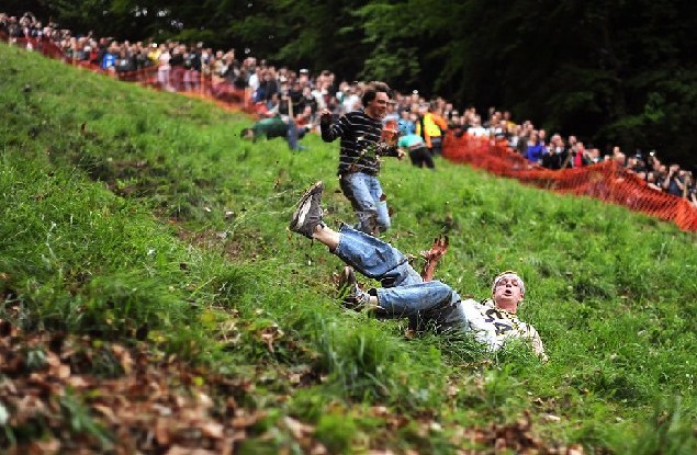 英國人は毎年5月にクーパーヒルで大興奮のチーズ追い競爭を行なう。競爭のルールは至って簡単、山の斜面を転がり落ちるチーズを參加者が追いかけるというものだ。チーズに最初に追いつく若しくはゴールを超えた人が勝者となり、景品はより多くのチーズが貰えることだ。