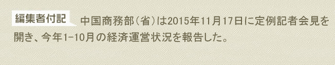 沈報道官は、1-10月、中國の外資吸収情況について、産業(yè)構(gòu)造のさらなる最適化、主な投資供給國の多様化、自由貿(mào)易試験區(qū)の牽引的役割の顕在化、外資による合併?買収取引額と割合の大幅な増加という4つの特徴があると説明した。