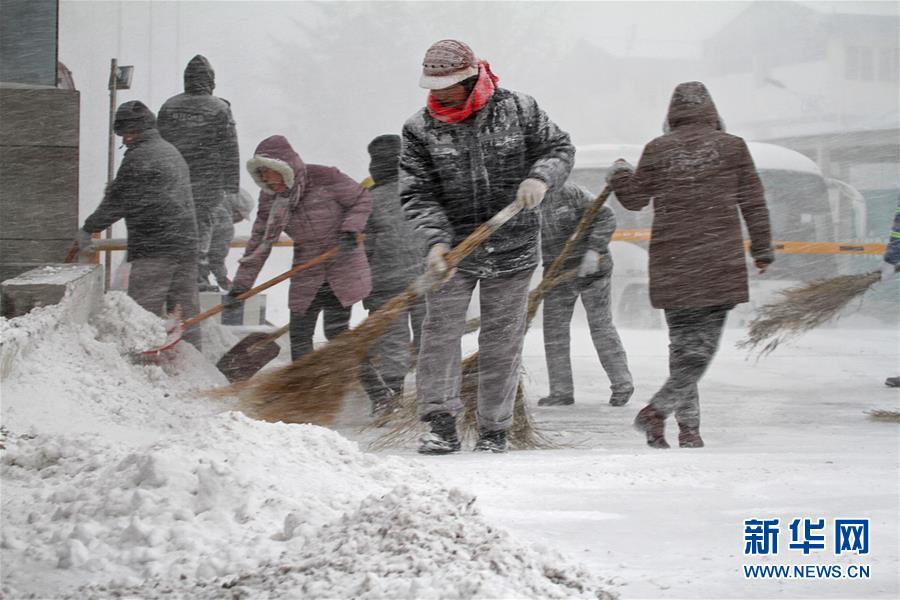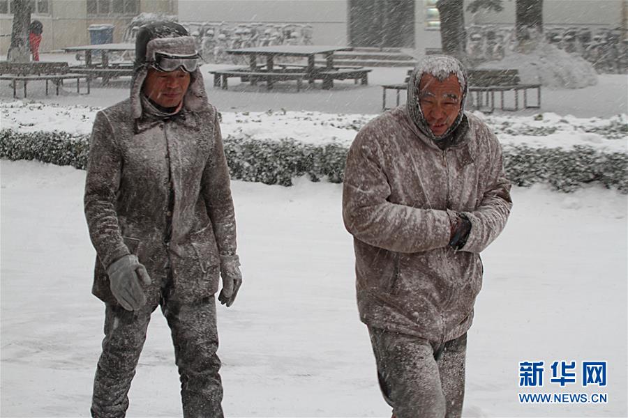 山東省煙臺(tái)市芝罘島東路で11月26日、雪の中を市民が歩いている。同日、強(qiáng)い寒気の影響で、同地は暴風(fēng)雪に見舞われた。煙臺(tái)市気象臺(tái)は26日午前5時(shí)30に暴風(fēng)雪の青色注意報(bào)を発令し、そして道路凍結(jié)及び強(qiáng)風(fēng)黃色注意報(bào)を相次いで発令した。新華網(wǎng)が伝えた。(編集JK)