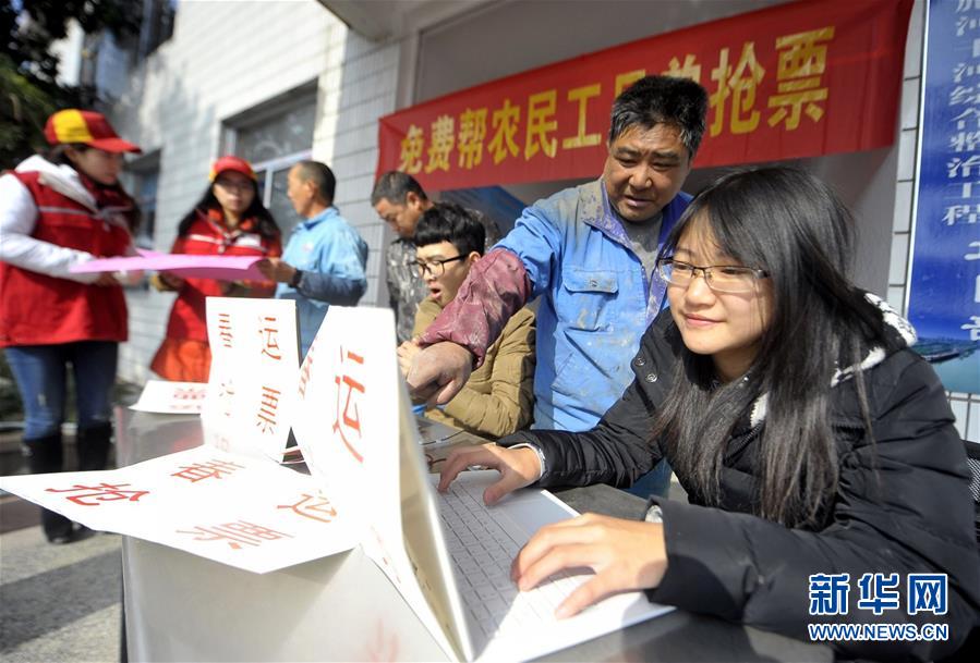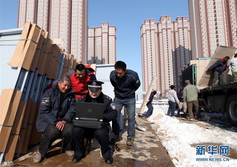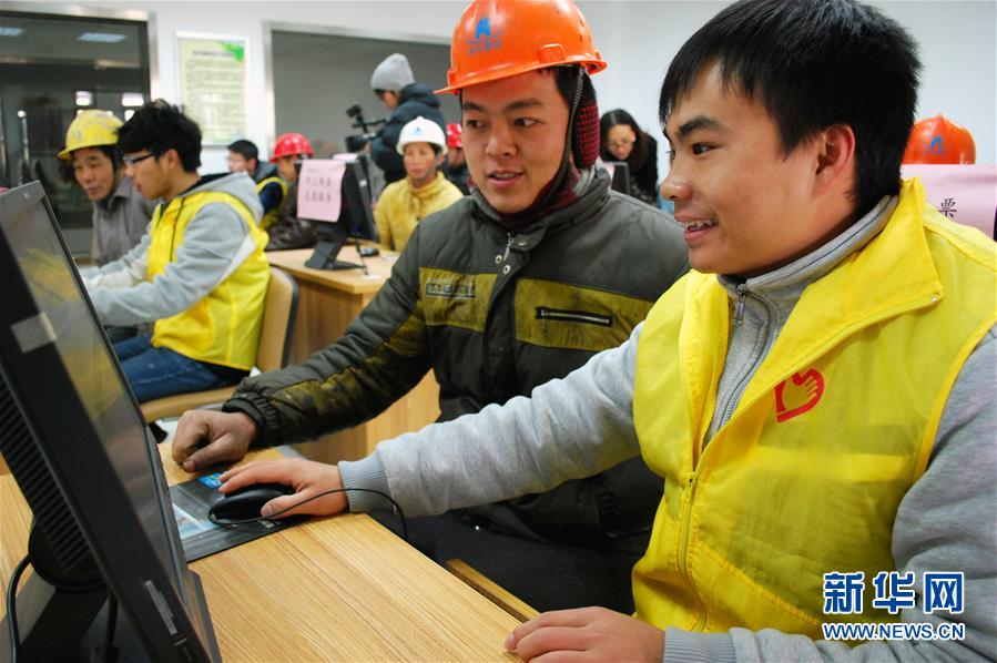 山東省棗荘市公安局市中分局青檀路派出所の警察紀(jì)金竜さんが11月26日、建設(shè)現(xiàn)場(chǎng)で地方からの出稼ぎ労働者がネットで鉄道乗車券を購(gòu)入するのを手伝っている。同日は2016年の春運(yùn)(春節(jié)<舊正月>の帰省?Uターンラッシュに伴う特別輸送體制)の鉄道乗車券予約販売1日目で、各地の善意のある人が続々と行動(dòng)を起こし、地方からの出稼ぎ労働者の乗車券購(gòu)入や帰省を支援している。新華網(wǎng)が伝えた。(編集JK)