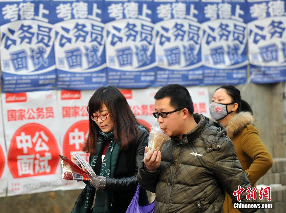 「國考」(國家試験)と言われる中國國家公務(wù)員採用共通科目の筆記試験が11月29日、始まった。中國國家公務(wù)員局の統(tǒng)計によると、2016年度國家公務(wù)員試験は延べ199萬8千人の応募者のうち最終的に139萬4600人が資格審査に合格した。2015年度の応募人數(shù)と比較すると更に減少した。今年度の採用人數(shù)は2萬7871人の予定で平均競爭率は50分の1と昨年度の63分の1に比べると緩和されている。最も人気のあるポストの競爭率は2847分の1に達(dá)した。中國新聞網(wǎng)が伝えた。(編集JK)
