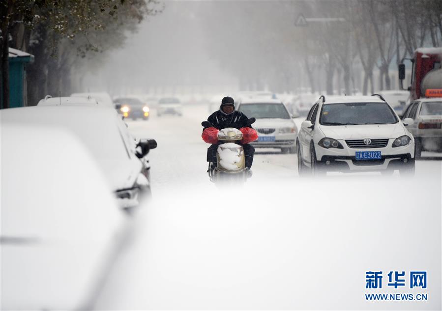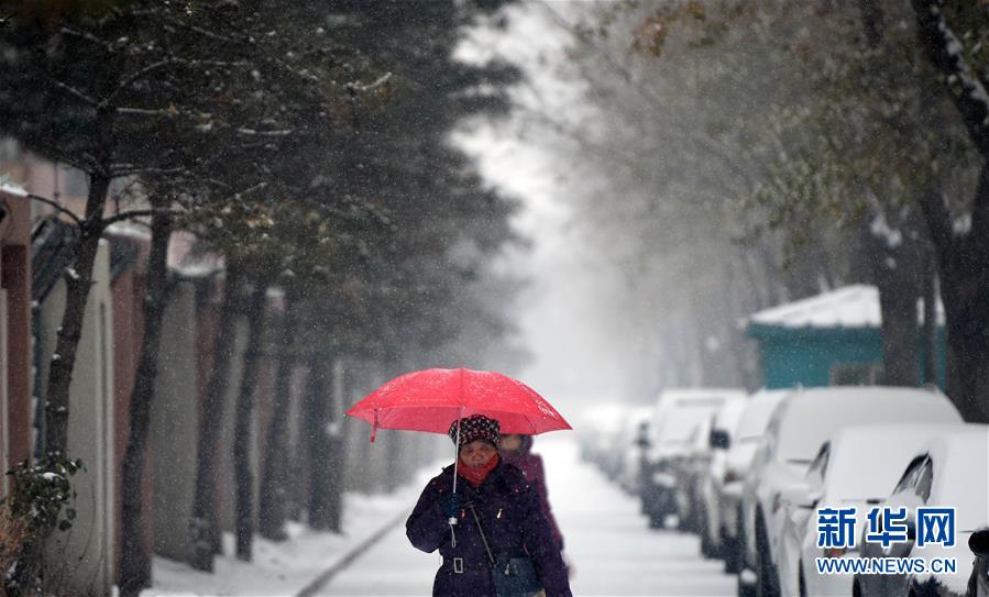 遼寧省瀋陽市の街角で11月29日、雪の中を市民が歩いている。同日未明、新たな寒気の影響で瀋陽市は比較的強い降雪を迎えた。遼寧省気象災害早期警報センターは午前8時に黃色の大雪警報及び道路凍結警報を発令し、瀋陽市周辺及び遼寧省管區(qū)內の多くの高速道路が閉鎖、または一部通行止めになった。人民網が伝えた。(編集JK)