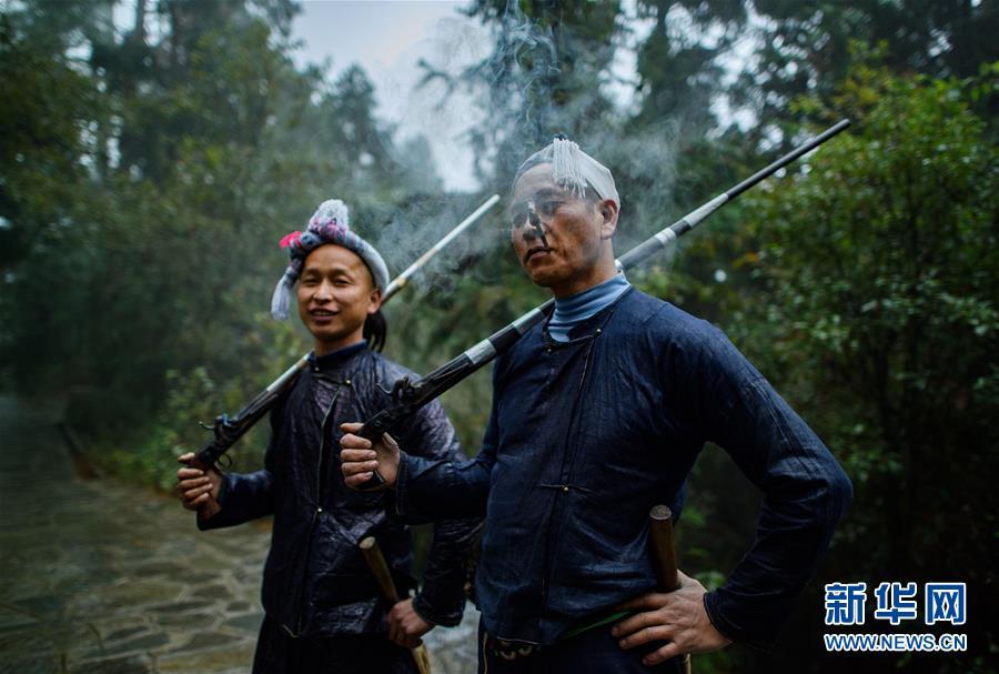 バシャミャオ族の村は貴州省従江県郊外にある海抜550メートルの山あいに位置している。300余りの民家があり、今に至るまで猟銃(公安機(jī)関の特別承認(rèn)済)を身に著け、鎌で頭髪を剃り、古木を參拝するなど古い生活習(xí)慣を守っている。バシャの男性は頭のてっぺんに髷を結(jié)い、ずっと腰に刀を身に著け、肩には火薬銃を擔(dān)いでいる。來客の時(shí)には、屈強(qiáng)なバシャの男性が村の入口の門で民族楽器の蘆笙、芒筒を演奏し、バシャの若い女性は牛の角で作った杯で攔門酒を捧げる。笙の歌を1曲演奏し終え、空砲を3発打ち鳴らし、門を開けて客を迎え入れる。バシャミャオ族は「中國最後の射撃手村」と稱されている。新華網(wǎng)が伝えた。(編集JK)
