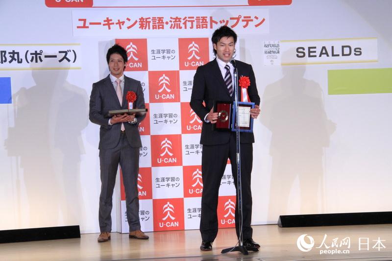 受賞者はラグビー日本代表の五郎丸歩選手。ラグビー日本代表は今年のワールドカップで歴史的な成績を収め、3試合に勝利して注目を集めた。五郎丸選手は試合の際の個(gè)性的なポーズが話題となった。