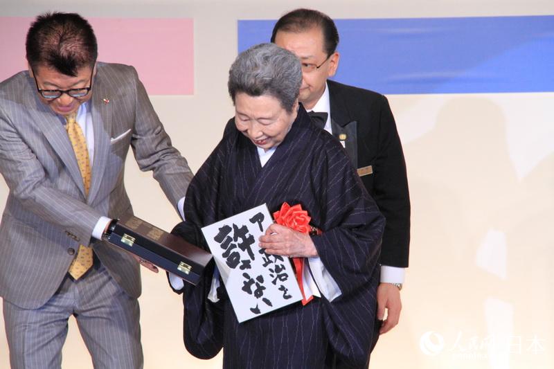 受賞者はこの政治スローガンの発案者で日本人女性作家の澤地久枝さん。日本がより広い範(fàn)囲で軍事活動(dòng)を行える環(huán)境を整える安保法案を安倍政権が國會(huì)で強(qiáng)行に推し進(jìn)めようとした際、この法案に反対する澤地久枝さんがこのスローガンを呼びかけ、今年7月の安保法案反対デモの際、デモ參加者がこのスローガンを多用した。