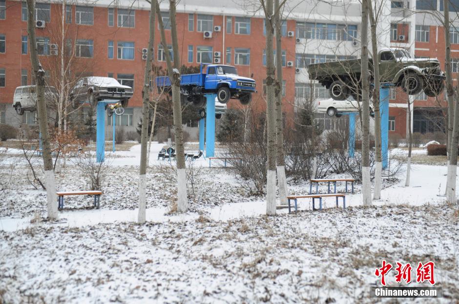 吉林省長(zhǎng)春市の職業(yè)技術(shù)學(xué)校で12月1日、自動(dòng)車、トラック、ジープ、モトクロスなど様々な車両が柱に支えられ空中に浮いている。自動(dòng)車を支えている柱は約5メートルの高さだ。校外の道路と1枚のフェンスで隔てられているだけなので、學(xué)校の校門左側(cè)の空き地にあるこれらの「宙に浮く車」の一角は非常に注目を集めている。(編集JK)