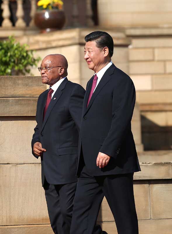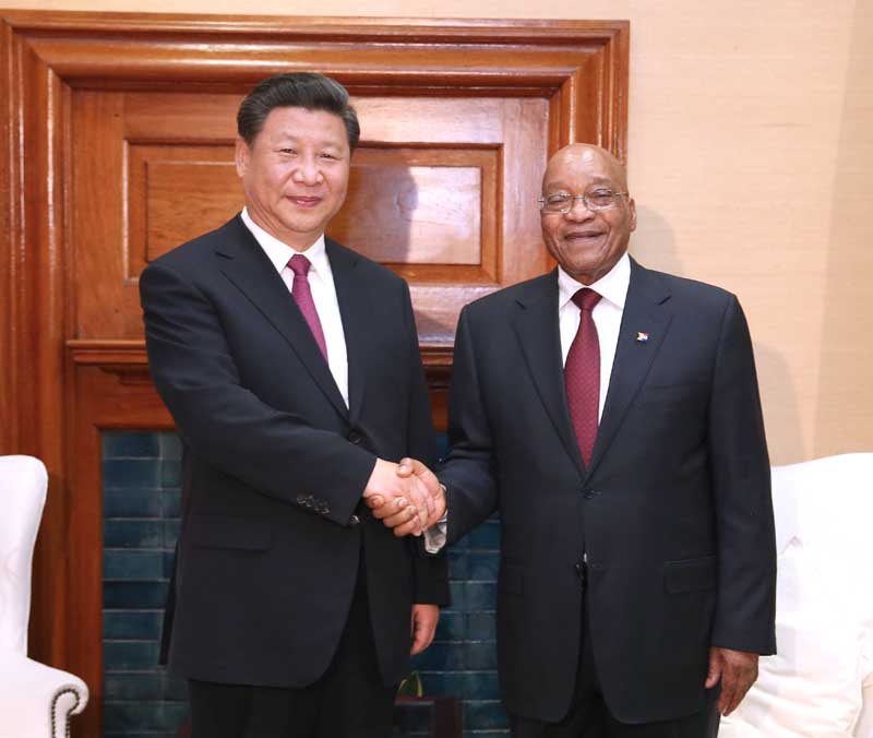 習(xí)主席は「雙方は未來志向、高度の相互信頼の戦略パートナーであり続け、上層部交流を緊密化し、政黨、政府、立法機(jī)関の交流を強(qiáng)化し、各自の核心的利益および重大な懸念について引き続き支持し合う必要がある。平等?互恵、協(xié)力?ウィンウィンのパートナーであり続け、中國と南アフリカの相互信頼と経済的相互補(bǔ)完という2大優(yōu)勢(shì)を発揮し、海洋経済、生産能力、エネルギー、貿(mào)易、投資など重點(diǎn)分野の協(xié)力を推進(jìn)し、両國貿(mào)易の均衡ある持続可能な発展を促進(jìn)する必要がある。中國は中國とアフリカの生産能力協(xié)力の先導(dǎo)、アフリカの工業(yè)化の促進(jìn)に向けた南アフリカの努力に助力し、金融機(jī)関の対南アフリカ融資規(guī)模の拡大を支持し、金融協(xié)力を革新し、BRICS新開発銀行アフリカ地域センターの建設(shè)計(jì)畫の加速を支持し、南アフリカとアフリカ諸國の発展に積極的役割を果たすことを望んでいる。雙方は相互支持、緊密な協(xié)力のグローバルパートナーであり続け、地域?國際組織での協(xié)力を強(qiáng)化し、BRICS協(xié)力が一層の成果を得るようにする必要がある」と強(qiáng)調(diào)した。