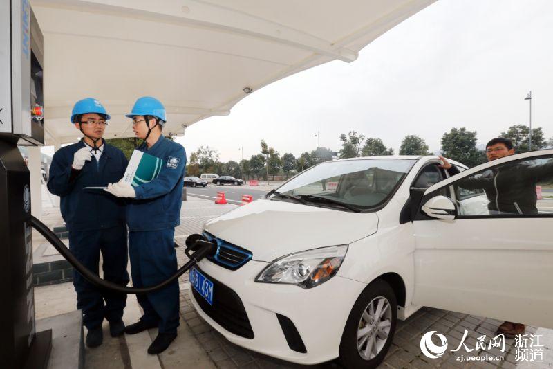 市民の姚さんは寧波供電公司の職員の説明を受け、沈海高速道路の奉化サービスエリアで電気自動(dòng)車(EV)の急速充電を初體験した。充電ポールでカードをかざし充電を開始すると、15分で80%の充電を完了できる。同高速鉄道の寧波區(qū)間の4ヶ所のサービスエリア(雙方向で8カ所)では、電気自動(dòng)車急速充電スタンドが稼働開始している。人民網(wǎng)が伝えた。