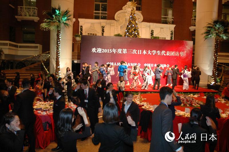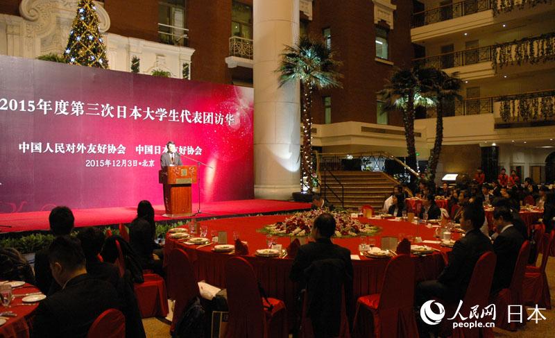 106人のメンバーからなる今年3回目の日本大學(xué)生訪中団が2日、北京に到著し、北京?杭州?上海の3都市の訪問をスタートした。3日夜、中日友好協(xié)會(huì)による盛大な歓迎式が北京で行われ、中國(guó)人民対外友好協(xié)會(huì)の謝元?副會(huì)長(zhǎng)や訪中団の宇都宮徳一郎団長(zhǎng)、在中國(guó)日本國(guó)大使館の石飛節(jié)參事官らが出席し、式辭を述べた。