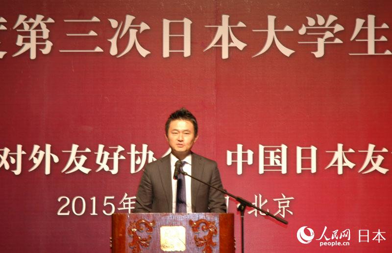 石飛節(jié)參事官は式辭で、「數(shù)日前、北京は深刻な煙霧の天気となった。日本メディアでそのことを知り、訪中の決心が揺らいだ人もいるかもしれない。しかし夜に吹いた北風(fēng)のおかげで、青い空と白い雲(yún)の良い天気が戻ってきた。日本メディアでは、北京に快晴が戻ったことはニュースにはならないだろう。北京の大気汚染は依然として深刻だが、ゆっくりと改善しつつある。日本のテレビでは深刻な汚染の様子ばかりが報(bào)道され、一年中汚染が続いているようなイメージがある。だが実際の狀況はそうではない。日本でわかる中國(guó)のことというのは中國(guó)の一部分でしかない。実際に行かなければ、この國(guó)の実際の狀況を知ることはできない」とし、學(xué)生たちに対して、「中國(guó)を內(nèi)側(cè)から感じ、中國(guó)人の友達(dá)を作り、友情を日本に持ち帰り、自分の言葉で友達(dá)に本當(dāng)の中國(guó)の姿を伝えてほしい」と呼びかけた。