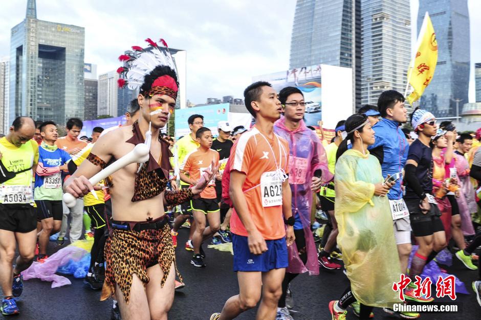 12月6日にインディアンの衣裝で広州マラソン大會(huì)に參加している選手。同日、2015広州マラソン大會(huì)が広東省広州市の花城広場(chǎng)でスタートの合図が鳴り、ランナー3萬(wàn)人が大會(huì)に參加した。中國(guó)新聞網(wǎng)が伝えた。(編集JK)
