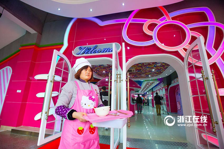 ハローキティをテーマにした食堂がこのほど浙江省杭州市のある大學(xué)にオープンした。一般向けの食堂として、大勢の市民や近くの大學(xué)の在校生が訪れている。