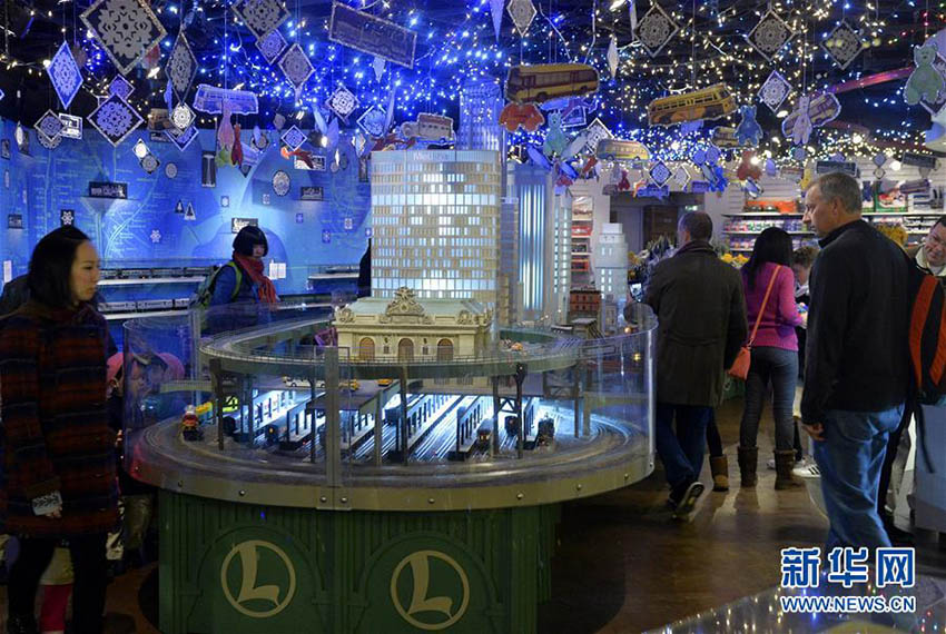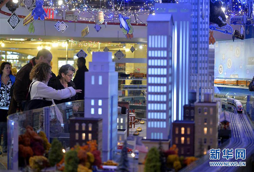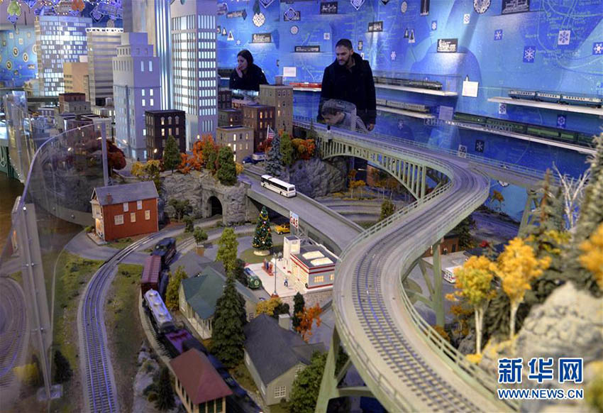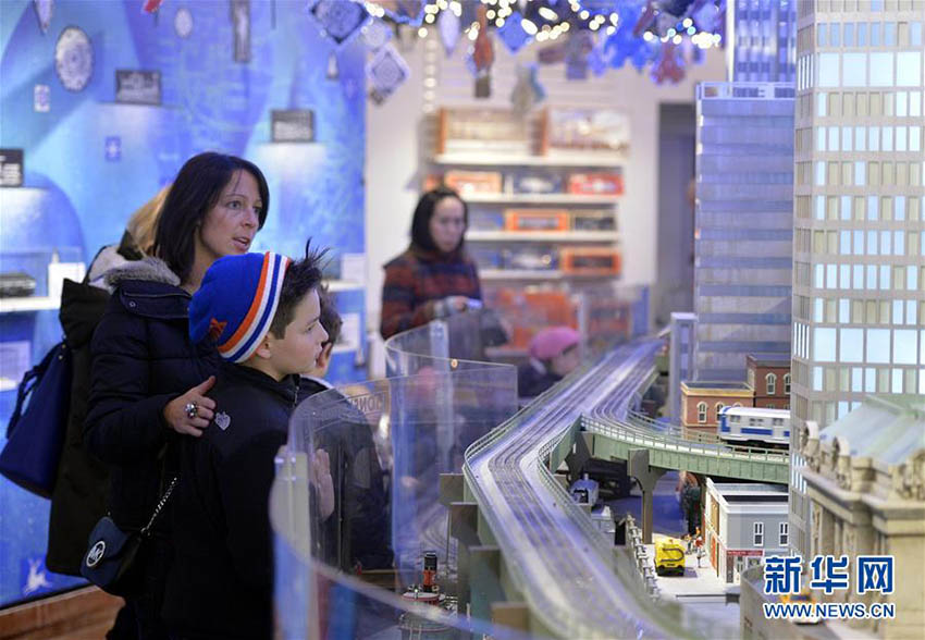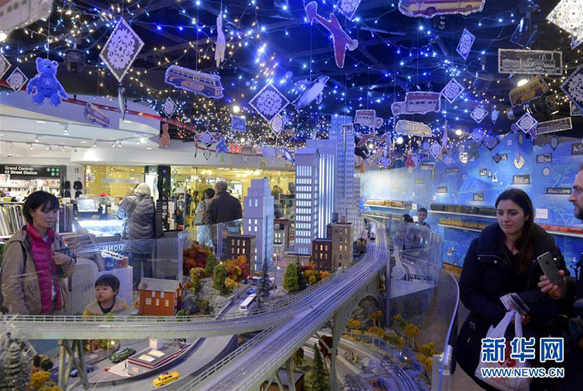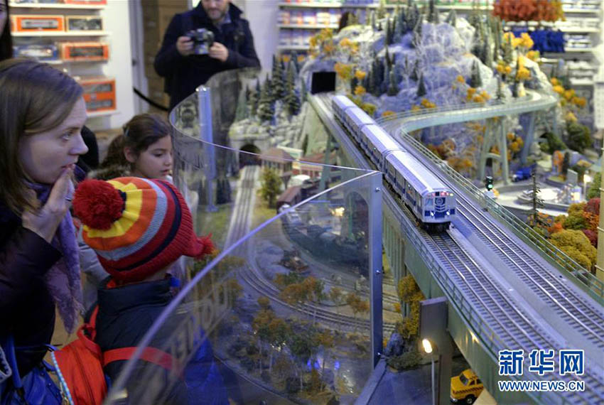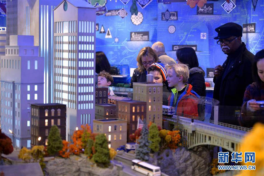 観光客が12月9日、米國ニューヨークのグランドセントラルステーションで展示されている鉄道模型を見學(xué)している。ニューヨーク交通博物館が休日のグランドセントラルステーションの鉄道模型を公開した。毎年クリスマスの時期、ひっきりなしに往來する同駅の利用者や市民に向け、無料で展示している。この展示では歴代の列車やレール、景色をジオラマで展示しており、鉄道模型の中に「童話の王國」を築いている。新華網(wǎng)が伝えた。(編集JK)