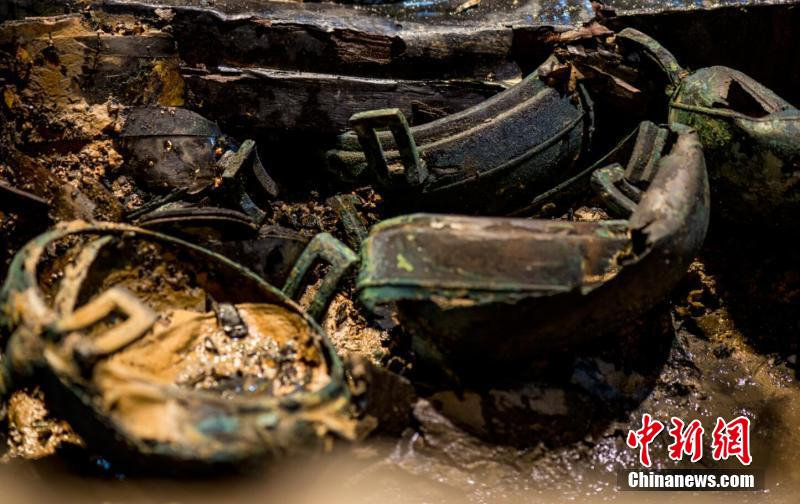 7日に初の玉(ぎょく)の杯が発見された後、発掘調(diào)査隊は江西省南昌市にある前漢の?;韬钅工沃鳂∈遥ü驻颏丹幛坎课荩─文蟼?cè)で、9つの青銅の鼎を発見した。専門家によると、周王朝の時代には「天子九鼎」という言葉があったが、漢の時代になると厳守されなくなった。それでも9つの鼎の出現(xiàn)は、墓の主人の身分が特別であることを示している。新華網(wǎng)が伝えた。