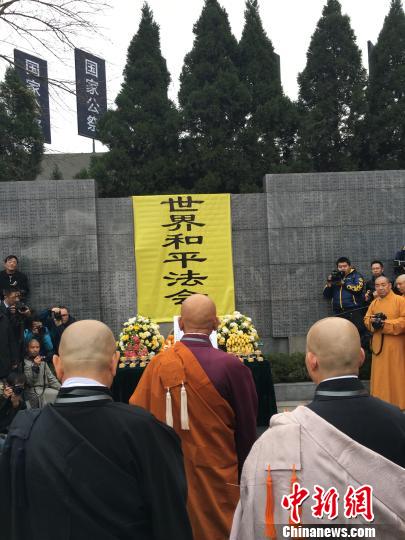 犠牲者の冥福と中日両國(guó)の平和を祈願(yuàn)する、中日仏教友好の使者である、臨済宗妙心寺派霊雲(yún)院の則竹秀南住持ら。