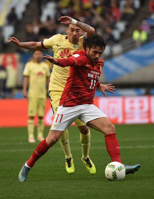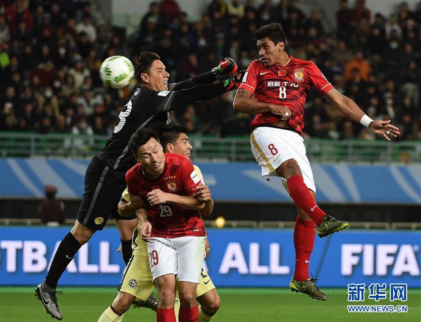最後の1分、パウリーニョのヘディングシュートが見事に決まり、広州恒大は2対1でクラブ?アメリカを下した。(編集KM)