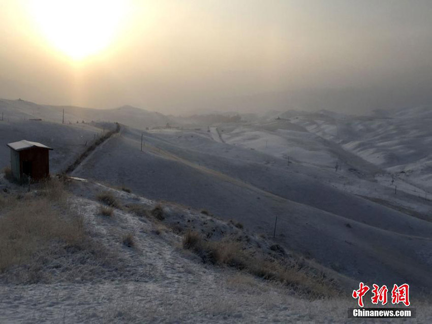 甘粛省の河西走廊に12月11日夜から広い範(fàn)囲で雪が降り始めた。一晩中降りしきる「雪の洗禮」を受けた祁連山麓に位置する粛南ユグル族自治県で翌朝12日午前中、果てしなく広がる草原に見渡す限りの美しい雪景色が広がった。中國新聞網(wǎng)が伝えた。(編集JK)