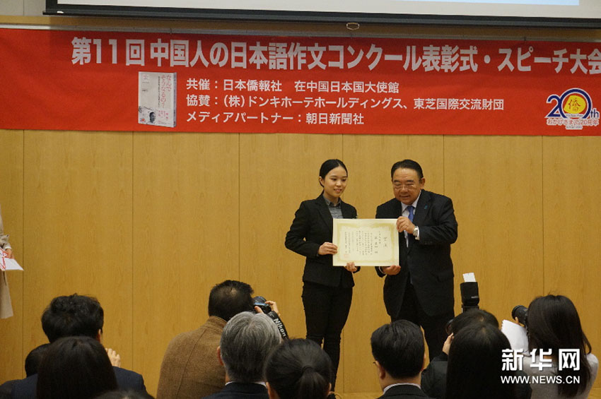 日本僑報社?日中交流研究所と在中國日本大使館が共催した第11回 「中國人の日本語作文コンクール」 の表彰式が12月12日、在中國日本大使館で開催された。山東政法學院(山東省済南市)3年生の張晨雨さんが今大會の最優(yōu)秀賞-日本大使賞を受賞した。