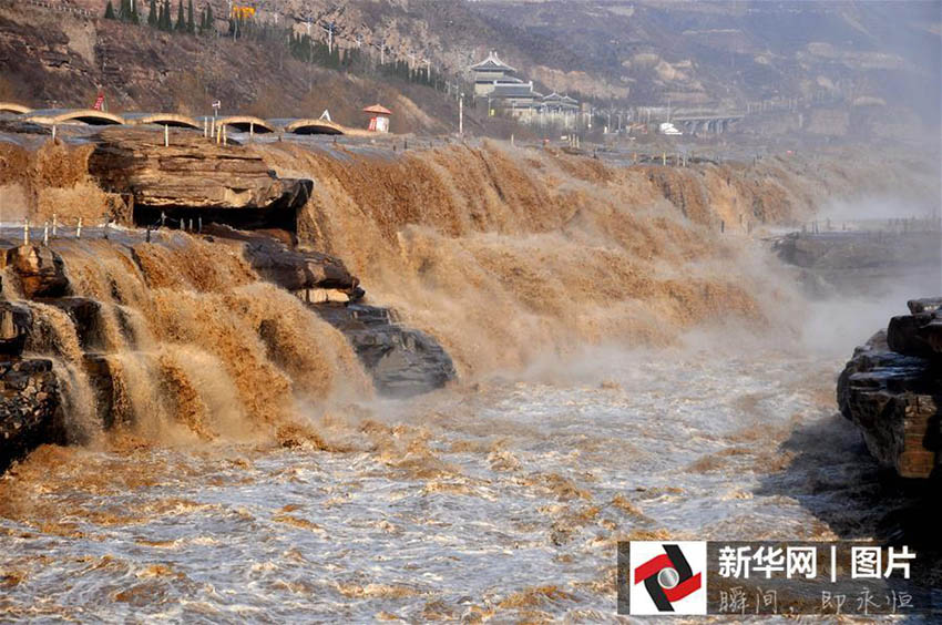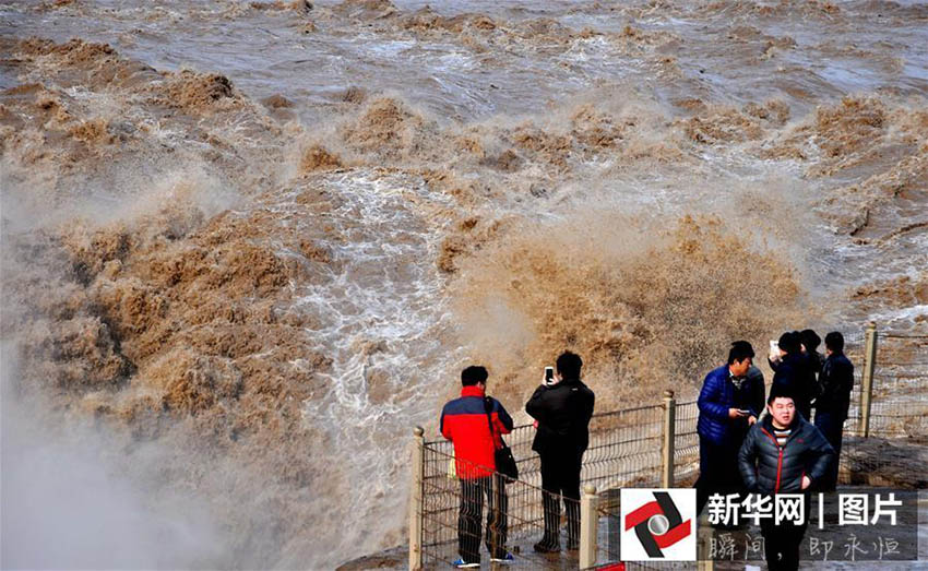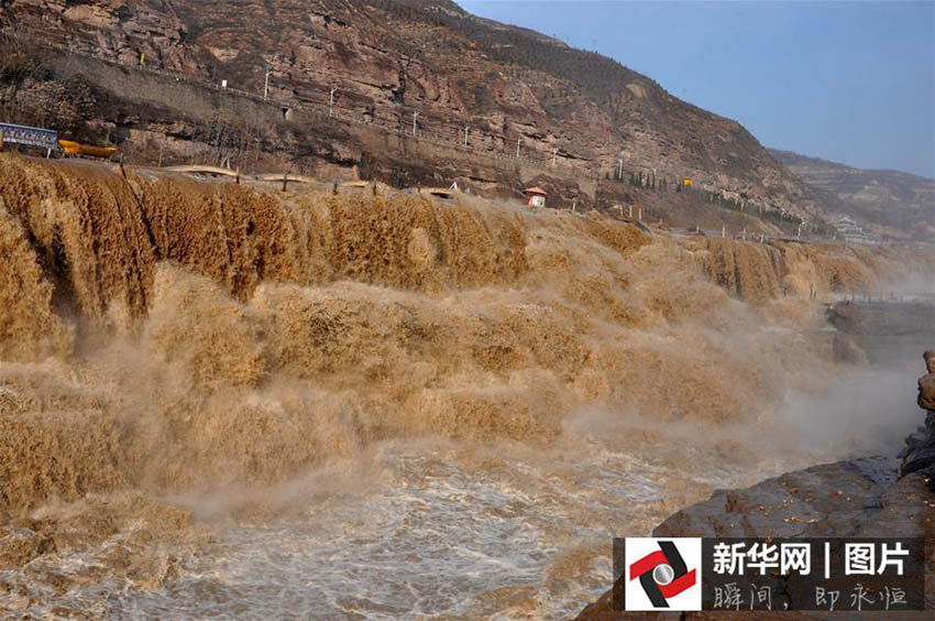 山西省臨汾市吉県で12月14日、荒ぶる壷口瀑布を撮影した。同日、解氷による川の増水を防ぐため、萬家寨ダムは黃河洪水?干ばつ対策総指揮部の指揮のもと、排水量を増やし、晉陜峽谷の水量も大幅に増量した。毎秒1000立方メートルを超える水が流れる壷口瀑布には冬には珍しい壯大で美しい瀑布群が姿を現(xiàn)した。中國新聞網(wǎng)が伝えた。(編集JK)
