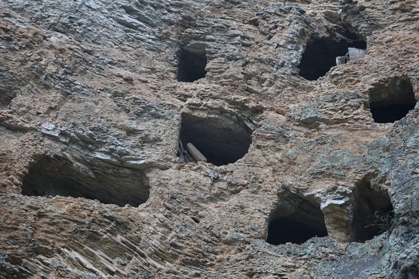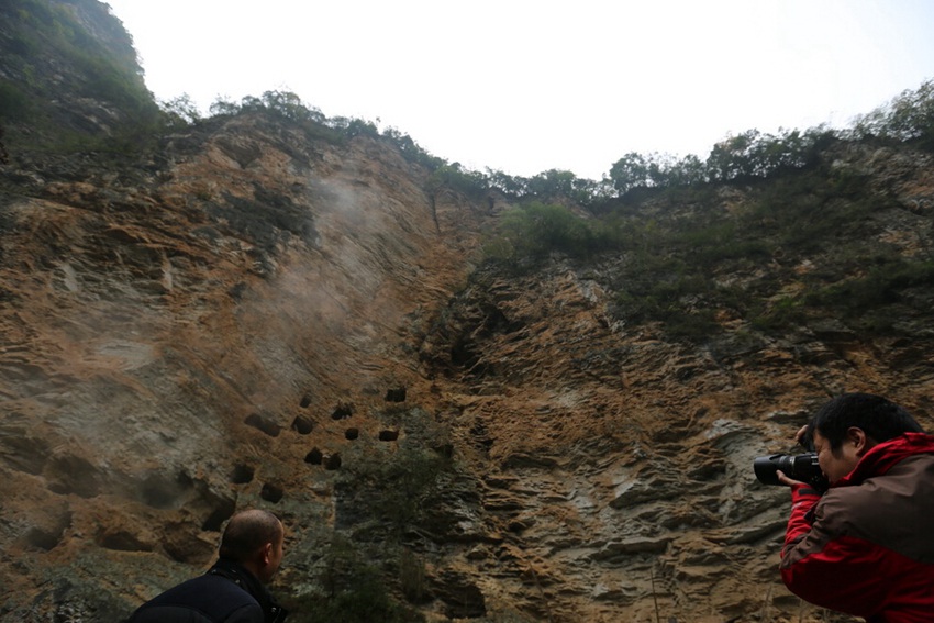 湖北省宜昌市秭帰県で11月19日、磨坪鄉(xiāng)楊林村の一角に地図でも確認(rèn)できる密集した懸棺群がある。幅50メートル、高さ100メートルほどの山の中腹部分の絶壁に収められた懸棺の合計(jì)は約130基。資料によると、同懸棺群は中國(guó)大陸部で発見(jiàn)された比較的大きな懸棺群の1つで、木製の棺は全て人工的に切り開(kāi)いた洞穴や崖のくぼみに安置していると記載されている。同県の考古學(xué)専門家によると、唐の時(shí)代に開(kāi)削したものとほぼ認(rèn)定していたという。