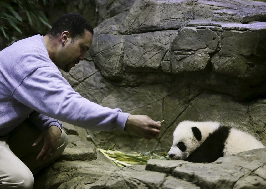 米國國立動物園で現(xiàn)地時間12月16日、同國滯在中のジャイアントパンダ「美香」(メイシャン)と「添添」(ティンティン)から生まれた赤ちゃん「貝貝」(ベイベイ)がメディアに初披露された。一般公開は1月16日の予定だ。小規(guī)模なメディア発表會の場で「貝貝」は意外にもリラックスし過ぎており、ガラス張りの飼育舎で居眠りをしている。間もなく生後4か月になる「貝貝」の體重はすでに約7.65キロ以上あり、1週間で約450グラム成長していることになる。すでに彼のお兄さんである「寶寶」(バオバオ)の生後4か月の頃よりも重くなっている。(編集JK)