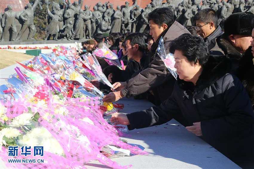 朝鮮の平壌で12月17日、人々が錦繍山(クムスサン)太陽(yáng)宮殿に參拝し、金日成氏、金正日氏の銅像に獻(xiàn)花している。同日は朝鮮の最高指導(dǎo)者だった故金正日氏の逝去4周年の命日にあたる。新華網(wǎng)が伝えた。(編集JK)