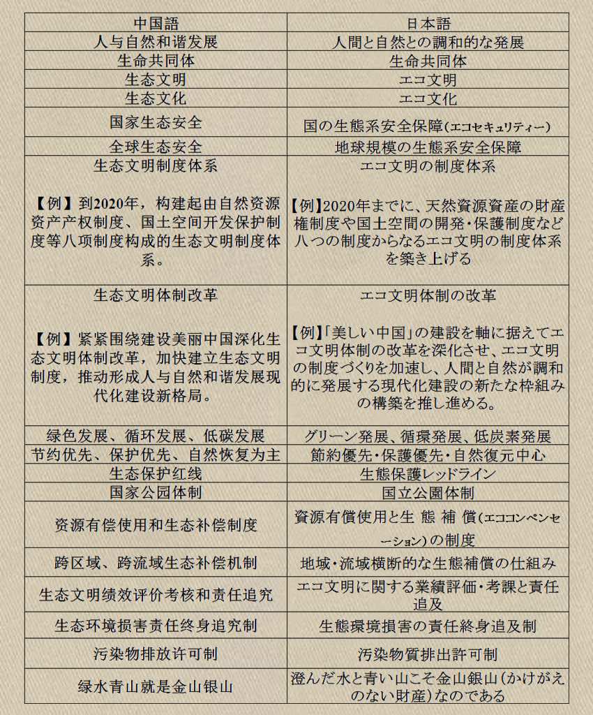 今回の用語は「エコ文明建設(shè)」というテーマを中心に、エコ文明建設(shè)の目標(biāo)、理念、基本方針、実現(xiàn)のルート、體制やメカニズム、政策?措置などに関する18の用語を選択した。用語は『エコ文明體制改革全體案』、『國民経済?社會(huì)発展第13次五カ年計(jì)畫の制定に関する中共中央の提言』などの文獻(xiàn)から抜粋している。