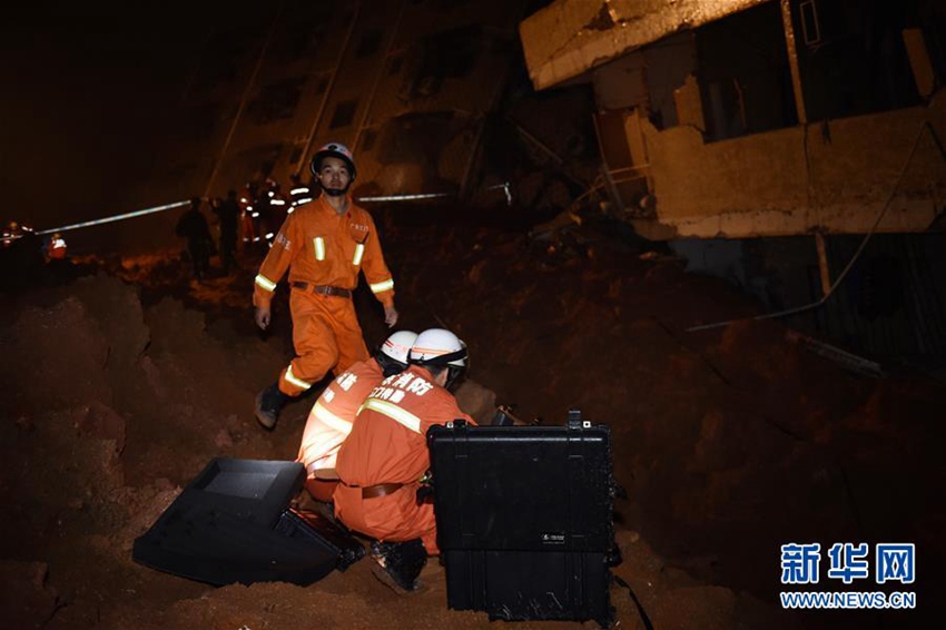 広東省公安消防総隊(duì)の発表によれば20日18時(shí)30分現(xiàn)在ですでに消防救援隊(duì)11チーム、消防車104臺、消防隊(duì)員566人、生命探知機(jī)123臺、無人機(jī)4機(jī)、救助犬30匹が救援に參加しており、14人の生存者を無事救出?救助したということだ。(編集TG)