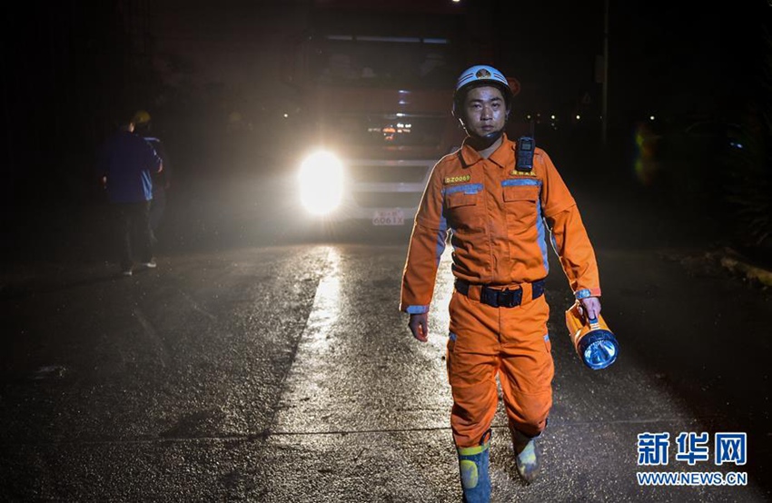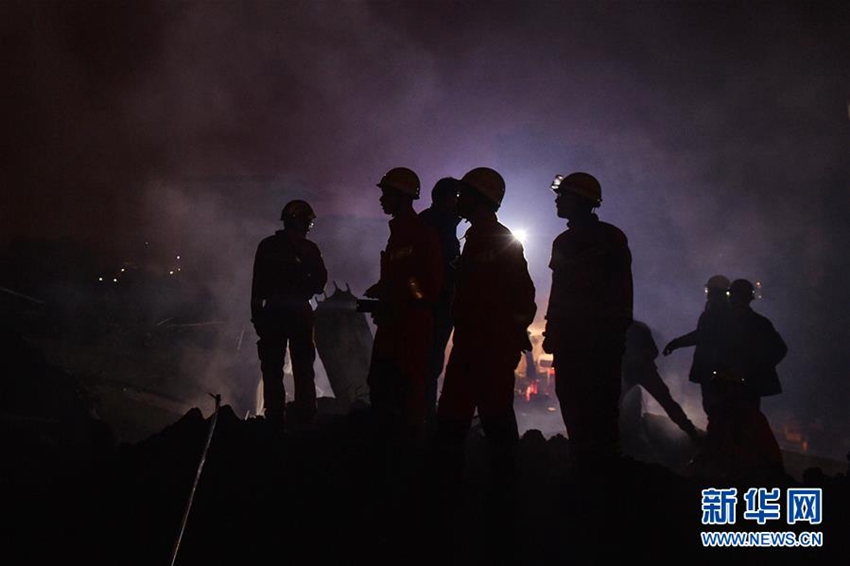 現(xiàn)場では土砂崩れの土砂が通った箇所のほとんどが埋もれており、一面の黃砂が殘っているだけであった。夜になっても小雨はおさまらず、気溫は下がり、救援活動(dòng)の難しさも増している。消防隊(duì)員が懐中電燈を片手に救助犬と生命探知機(jī)を攜え、事故現(xiàn)場を行き來して捜索活動(dòng)を行っていた。
