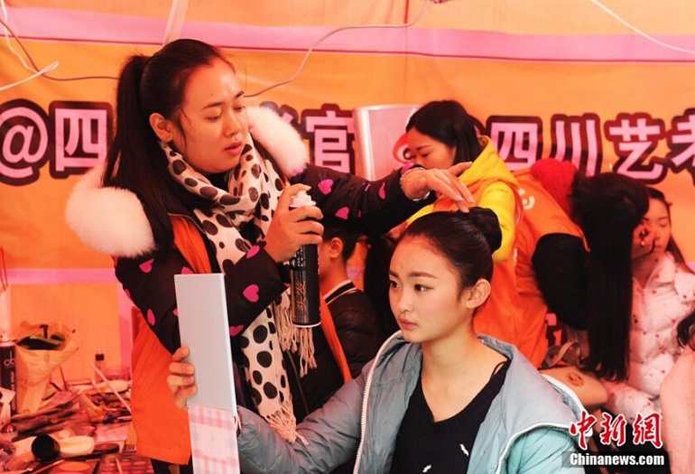 12月20日、2016年度の四川省の演劇と映畫専攻、ダンス専攻の大學(xué)入學(xué)試験が始まった。2萬人余りの映畫専攻、ダンス専攻の受験生たちが試験に臨み、試験會場は華やかな美女たちでいっぱいになった。中國新聞網(wǎng)が伝えた。