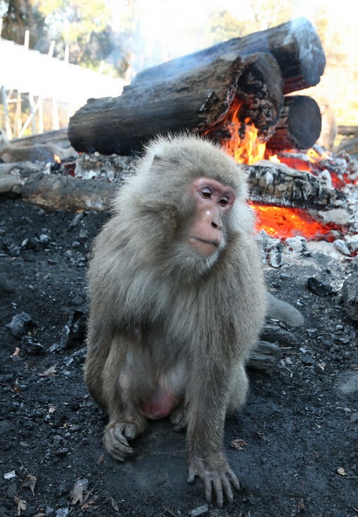 日本の愛(ài)知県犬山市にある世界屈指のサル類動(dòng)物園「日本モンキーセンター」で現(xiàn)地時(shí)間12月20日、毎年恒例のサルが焚火を囲み暖をとる様子を報(bào)道陣に公開(kāi)した。モンキーセンタ―によると、1959年の伊勢(shì)灣臺(tái)風(fēng)で木曽川に流れ著いた倒木を燃やしたところ、鹿児島県の屋久島にルーツを持つヤクニホンザルの集団が集まってきた。これをきっかけに恒例行事になったという。冬至にあたる今月22日から來(lái)年2月28日まで一般公開(kāi)される。(編集JK)
