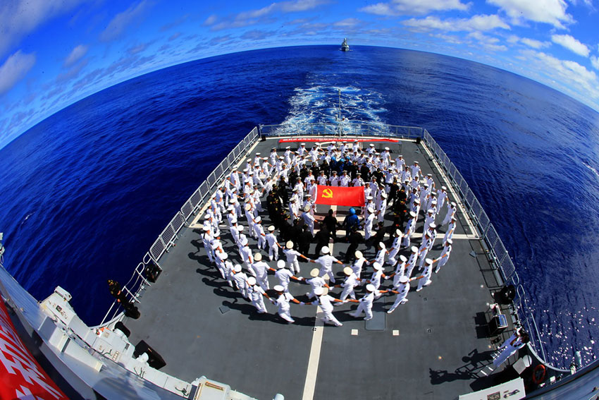 現(xiàn)地時間23日午前、世界訪問任務を遂行中の中國海軍152艦隊は赤道と國際日付変更線を越え、慶祝式典を行った。人民網が伝えた。