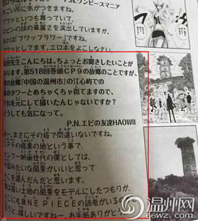 「本當に感激した。作者や漫畫のキャラクターにより親近感を覚えた」と呉さん。このいきさつを掲示板にアップすると、多くのワンピースファンから「羨ましさと妬み」の混じったコメントが寄せられたという。自分の故郷が大好きな漫畫の中に登場し、作者からも認めてもらえるなんてと、多くのネットユーザーが呉さんの勇気を稱賛した。