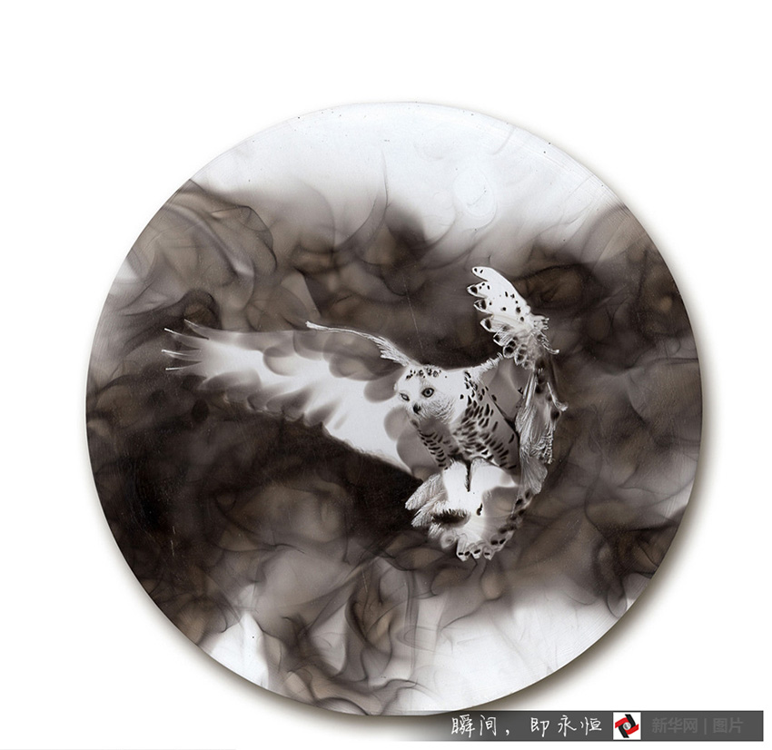 スティーブンさんは2001年に煙で絵を作り始めてから10數(shù)年の積み重ねを経て、今や、煙の絵畫はすでに完成の域に達(dá)している。(編集JK)
