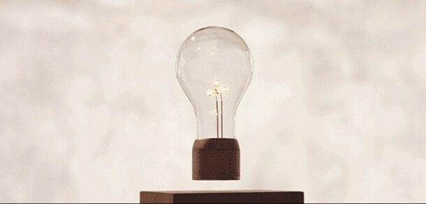 これは重力に逆らい宙に浮く電球で、ワイヤレス給電でLED照明を點(diǎn)燈する。また木製の臺(tái)座に取り付けられている無線誘導(dǎo)コイルは、電球を自動(dòng)的に浮かせ、停止させ、回転させることができる。(編集YF)