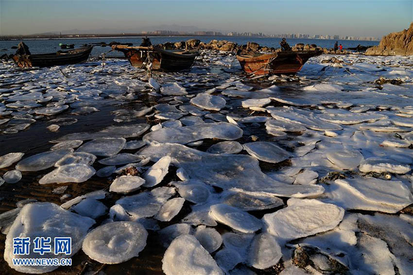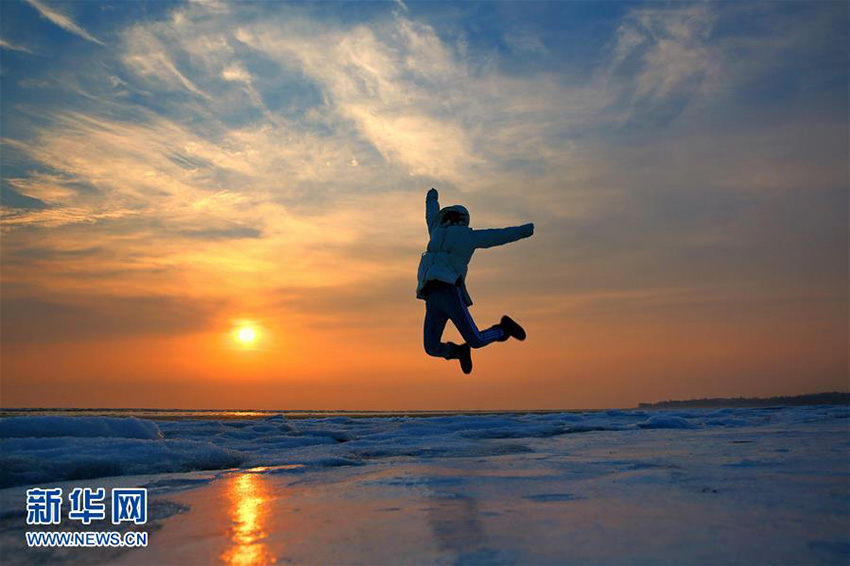 寫真は秦皇島市海港區(qū)の氷の海で見られた日の出。冬に入り、河北省秦皇島の海岸線沿いの海面が凍結(jié)し、氷の海という風景が見られた。新華網(wǎng)が伝えた。(編集IM)