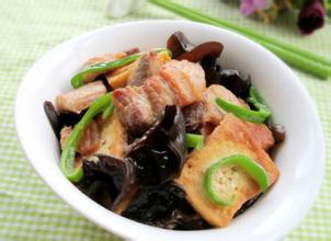 材料:豚肉200グラム、きくらげ75グラム(水に戻したもの)、豆腐2丁、中國(guó)セロリ30グラム、生姜の粒20グラム、酒、オイスターソース、コーンスターチ、塩少々、砂糖、ピーナッツ油適量。