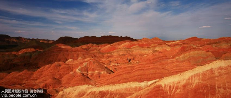 【甘粛、張掖】張掖丹霞は中國(guó)の丹霞地形(赤い堆積巖が隆起した切り立った斷崖の地形)が生育に最も適しており、地形形成が最も豊富な地域の1つである。中國(guó)のカラフルな丹霞を代表し、高い科學(xué)的考察と観光的価値を備えており、中國(guó)國(guó)內(nèi)唯一の丹霞地形と七色の丘陵が組み合わされた景色となっている。