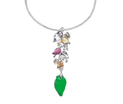 コンセプトにおける中國文化と西洋文化の融合以外に、中國系デザイナーは、東洋と西洋の素材上での最高の組み合わせにトライした。中國系寶飾デザイナーの羅啓妍氏は、メノウ、玉石、琥珀、真珠など東洋の素材をアクセサリの全體デザインに取り入れ、カラフルな寶石をアクセサリデザインの中心に據(jù)えるやり方を最初に提唱した。作品に使われている「ストーン(石)」は、一粒ずつを見てもどうということはないが、前漢時代や戦國時代の産物であるかもしれないことから、アクセサリとしての風(fēng)格を大いに引き上げ、東洋?西洋両方の政治界?ビジネス界で一世を風(fēng)靡した。