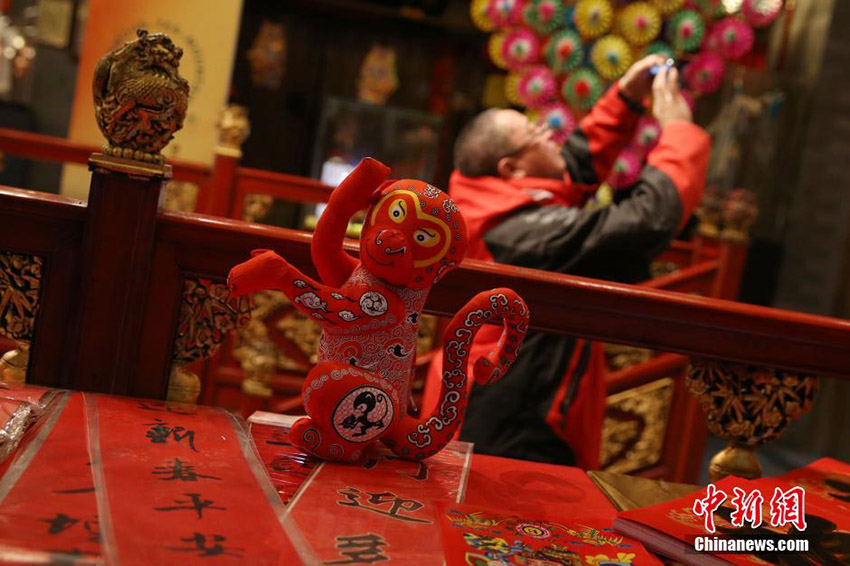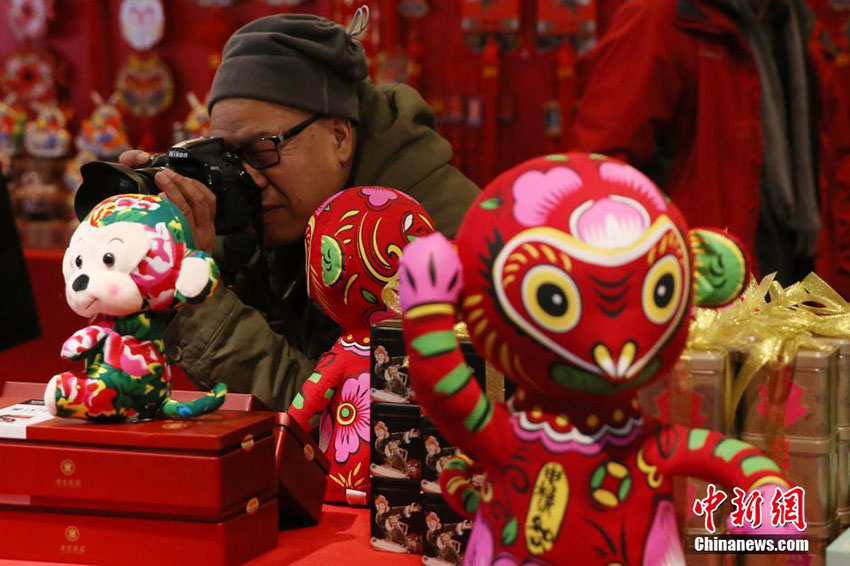 市民が多くの「サル」の縁起物の中で1月13日、寫真を撮影している。舊暦の申年が近づくにつれ、このところ各種「サル」をテーマとした人形が北京に登場(chǎng)し、市民の関心を集めている。中國(guó)新聞網(wǎng)が伝えた。(編集JK)